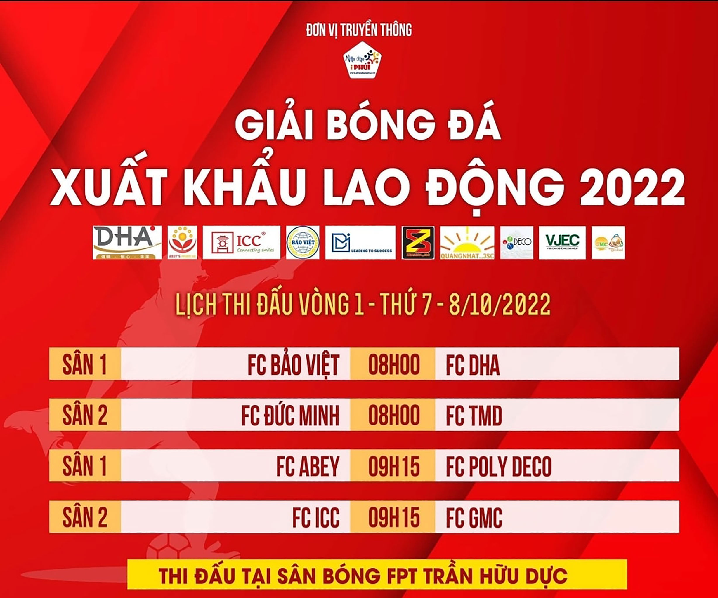 Nhằm mang lại một sân chơi thể thao đồng thời gắn kết mối quan hệ giữa các công ty trong ngành Xuất Khẩu Lao Động, Giải bóng đá Ngành Xuất Khẩu Lao Động 2022 chính thức được tổ chức, giải đấu có sự góp mặt của 10 đội tham gia. Tất cả đều là các nhân viên chính thức của các công ty.